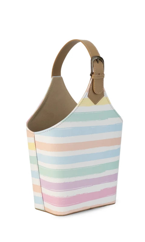 El Canasto Matero Venus Multicolor es un accesorio funcional para el transporte de termos. Su diseño incluye una división interior que organiza el contenido, y un asa de mano regulable con hebilla, facilitando el transporte. Fabricado en material símil cuero, mide 29 cm de altura, 17 cm de base y 9 cm de profundidad, garantizando durabilidad y comodidad en su uso.