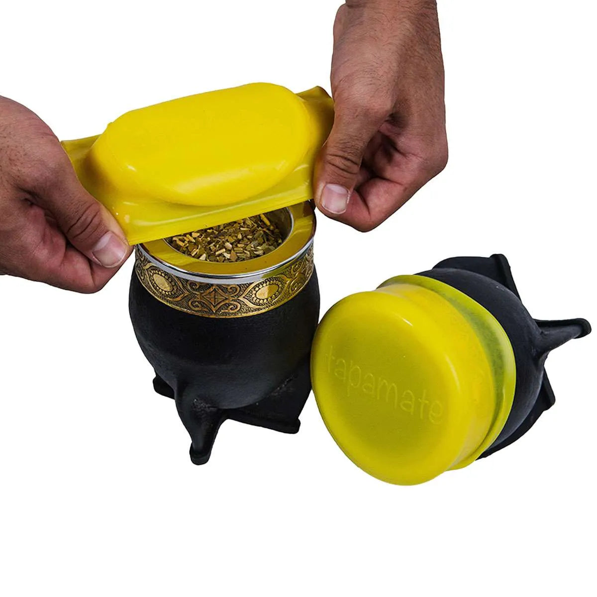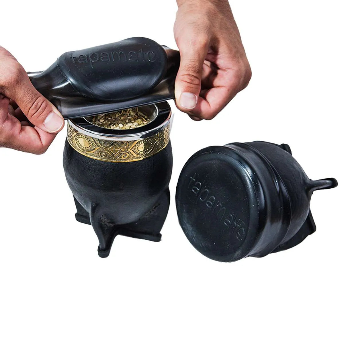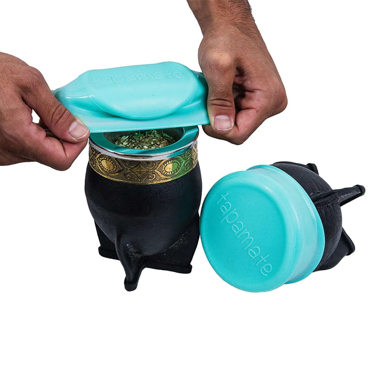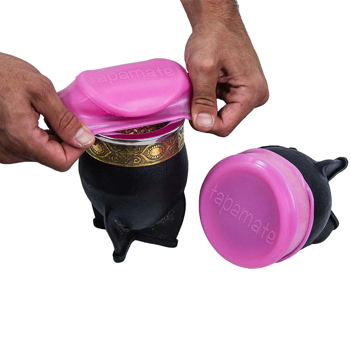Quita la bombilla, estira y ajusta tu Tapamate en la boca del mate, y listo.